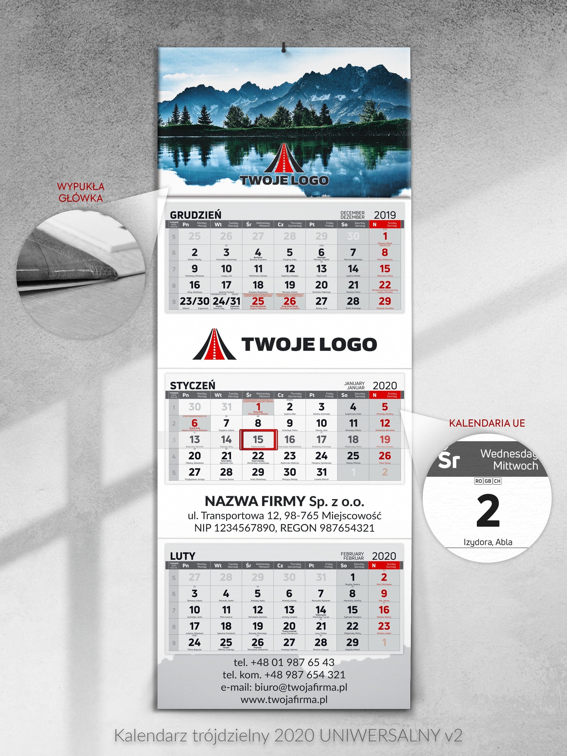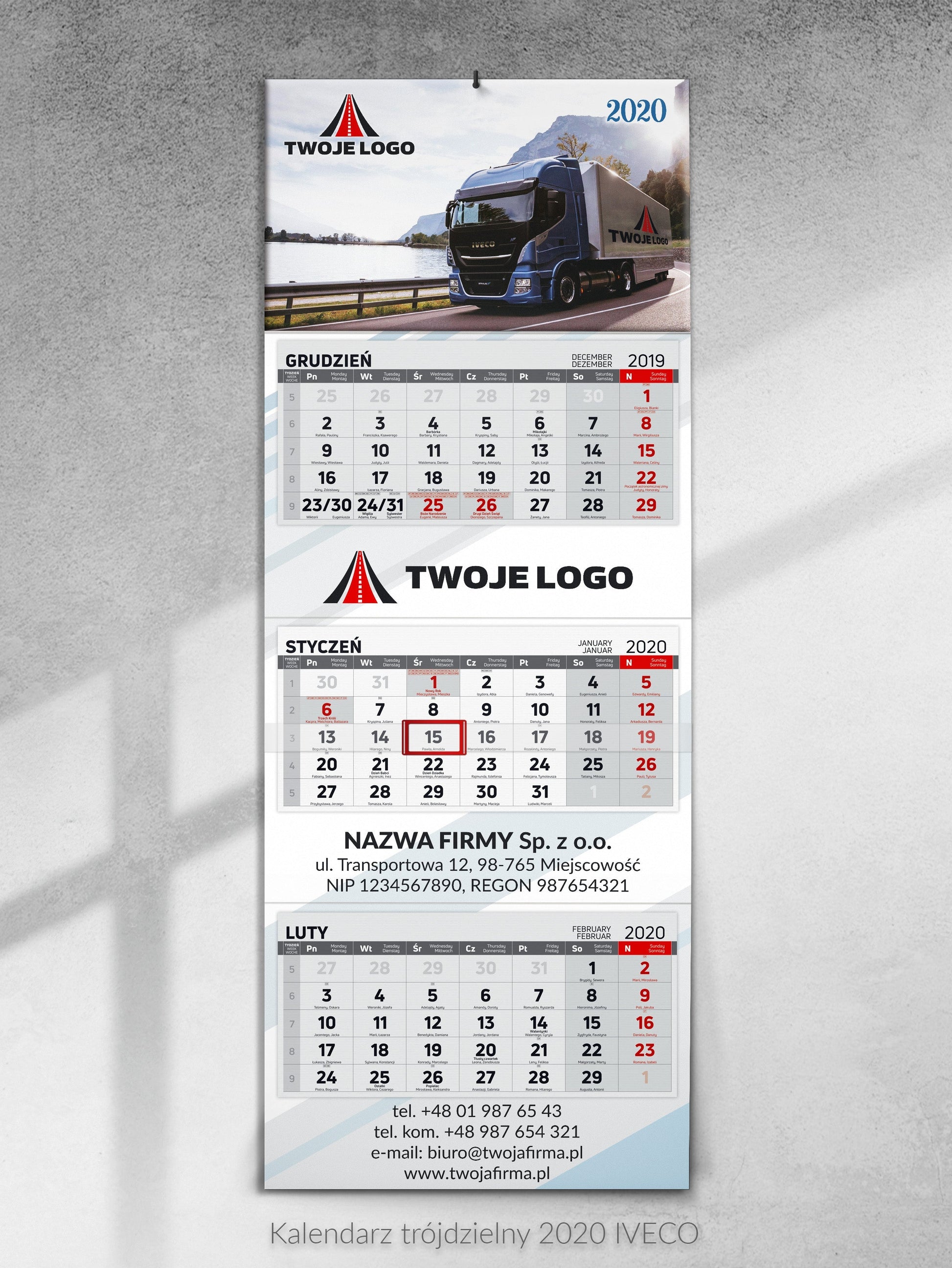 Kalendarz dla transportu i spedycji trójdzielny - 50 szt.